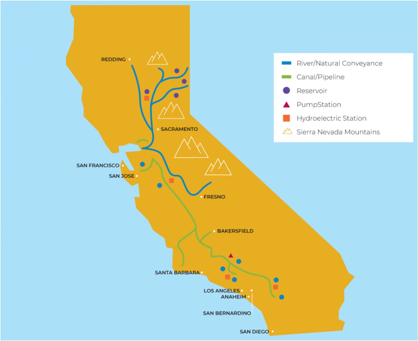 San Bernardino Valley imports water as a State Water Project contractor and manages groundwater storage within its service area. Formed under the Municipal Water District Act of 1911, the agency has broad authority to provide water services, as well as wastewater and stormwater management, recreation, and fire protection. State Water Project water is received at the Devil Canyon Power Plant Afterbay near California State University San Bernardino and conveyed east to spreading grounds, agricultural users, and wholesale customers in the San Bernardino Basin, and west for direct delivery and groundwater recharge in the Colton-Rialto Basin. San Bernardino Valley does not sell water director to residents.